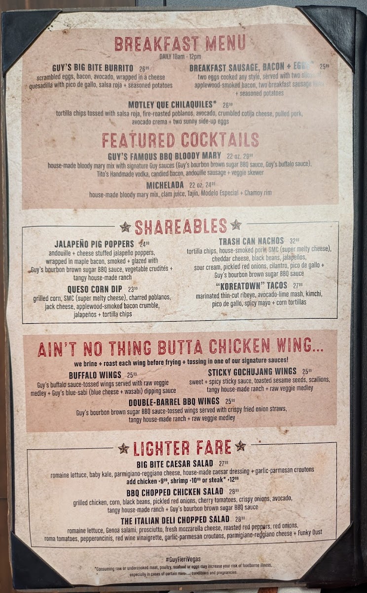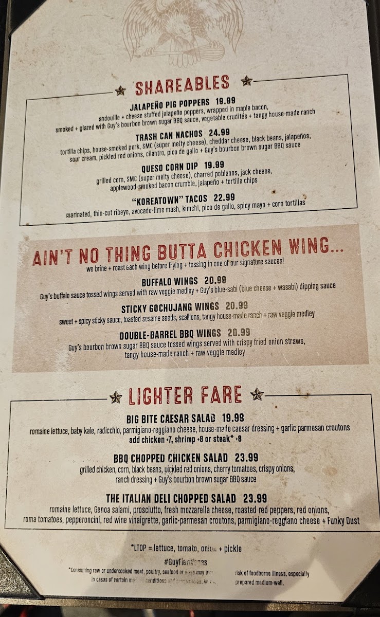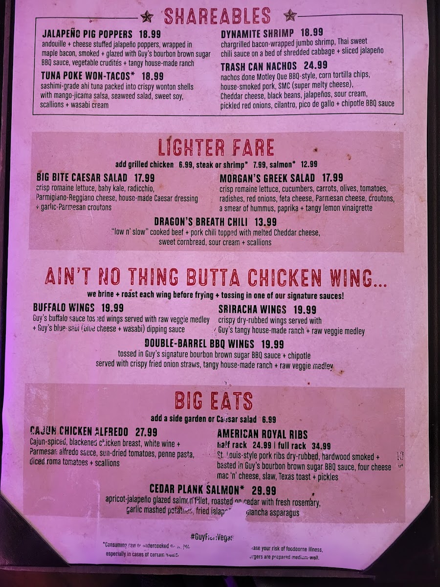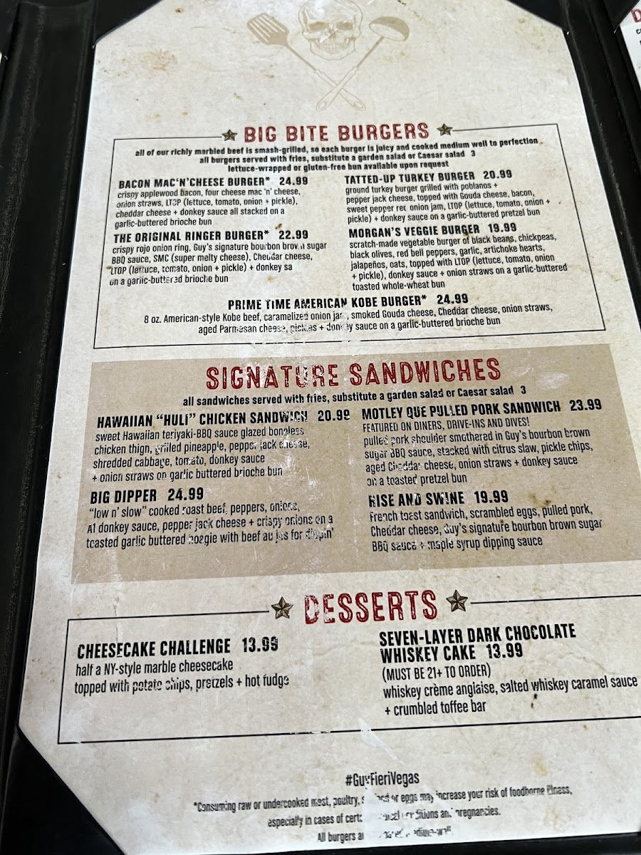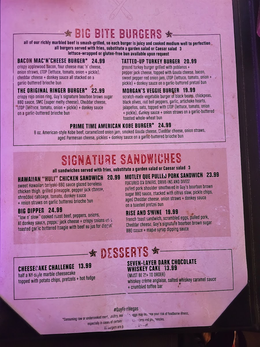 Welcome to Guy Fieri's Vegas Kitchen & Bar, a culinary hotspot located on the bustling Las Vegas Strip. This vibrant eatery is a must-visit for flavor enthusiasts craving comfort food with a twist. The menu bursts with bold offerings, featuring crowd favorites like the Ain't No Thing Butta Chicken Wing and the Bacon Mac ‘N’ Cheese Burger, which showcases layers of cheesy goodness and crispy applewood bacon.